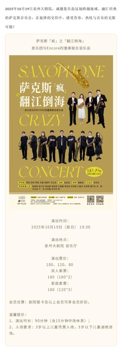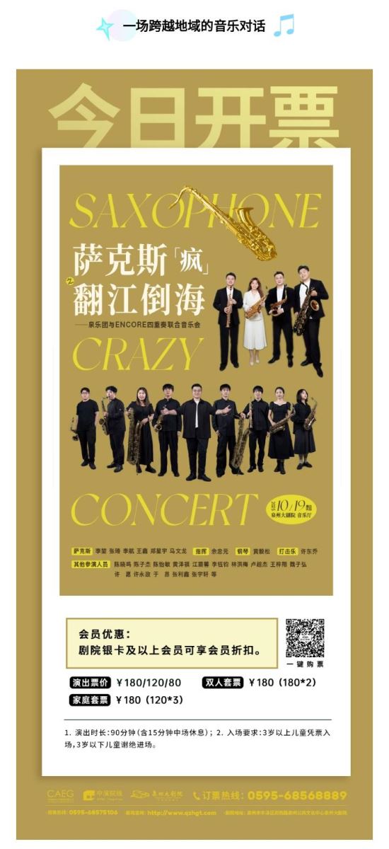 演出名称: 萨克斯「疯」之「翻江倒海」——泉乐团与Encore四重奏联合音乐会