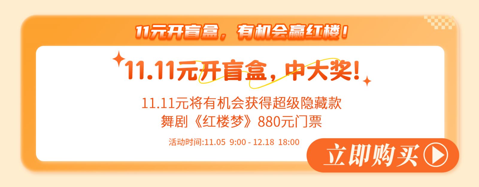 11.11元将有机会获得超级隐藏款舞剧《红楼梦》880元门票