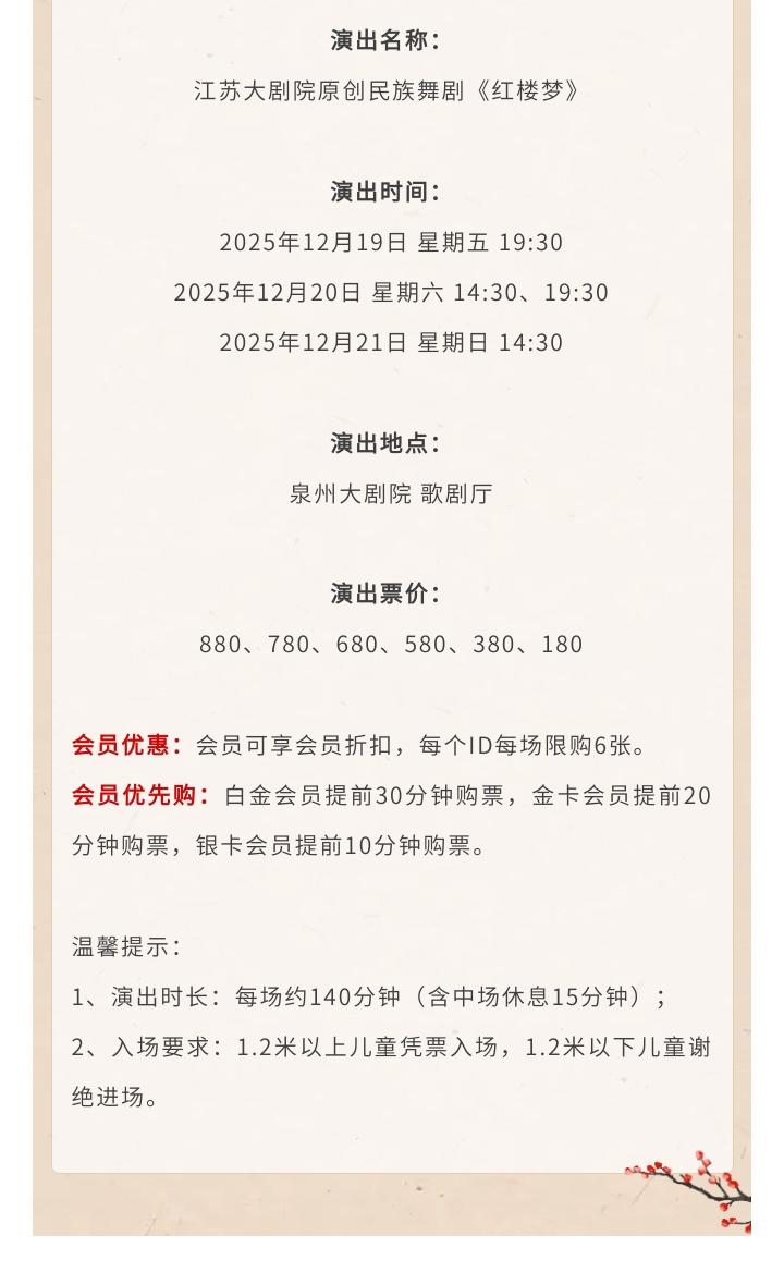 *温馨提示:年费会员享有优先购权益,但该权益仍有可能无法成功抢到票。如您仅想为本场演出抢票或日常居住地不在泉州或附近城市,敬请各位观众根据自身需求,选取适配自身的购票方式,理性办理年费会员,请仔细阅读会员权益,会员卡一旦办理将无法退换。